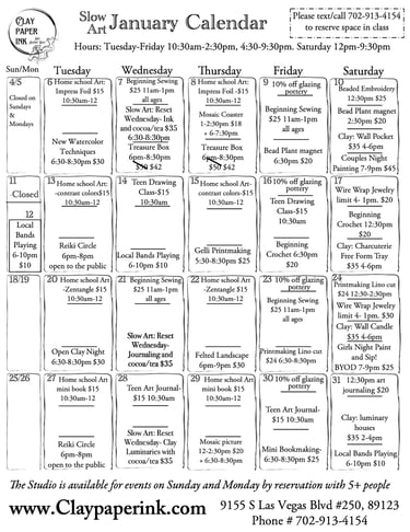 Instead of a lunch or dinner entree, order up an enriching art experience. Are you super artsy and creative? Come in, do an open studio fee and have fun using all our supplies for a couple hours.